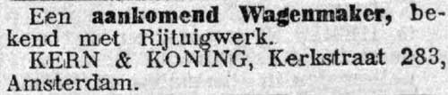 Kern was in 1901 rijtuigmaker in Amsterdam. Als Kern & Koning heeft de firma in elk geval bestaan van 1912 tot 1931.