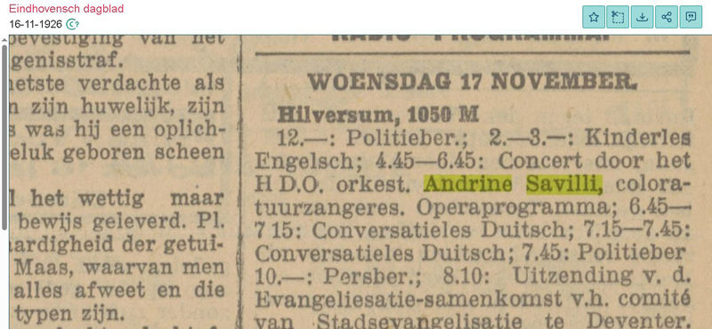 Het vertrek was eerst vastgesteld op eind juni, later zou dat eind juli worden. Hoe de reis verder verloopt is ook bij ons lid niet bekend, maar hij vond wel dat 3,5 maand na het geplande vertrek Andrine Savelli (foutief gespeld als Savilli) in Nederland voor de radio een zangoptreden heeft verzorgd.